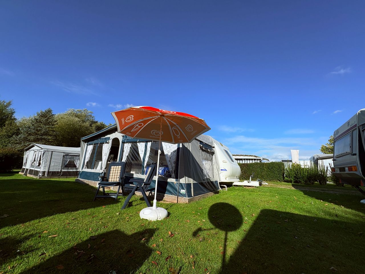 Die Chemietoiletten im Wohnwagen sind nicht in Gebrauch. Die modernen Sanitäranlagen befinden sich in unmittelbarer Nähe.